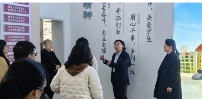 企业代表一行首先参观了校史馆。在讲解员引导下,代表们通过历史图片、文献资料、实物展品与多媒体展示,深入了解学校的办学历程、办学特色与办学成果。