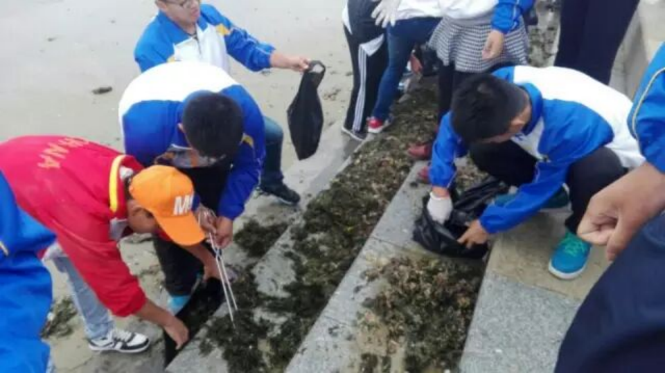下午两点,同学们在体育馆门口集合完毕,由青协部长武占涛及部员分发清洁工具,信电学院学生会主席张炳昊致出发辞后在各位学生会部长及青协部员带领下,志愿者们伴着阵阵海风,踏着阵阵海浪,从黄海明珠到烟台大学东门的海滩进行清理。