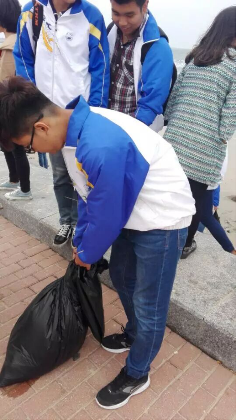 在活动中,同学们一改平时在家的娇气,努力清理着海滩的垃圾,不放过、不偷懒、不落后,展现出15级新生的风采。活动中还播放了一些豪迈歌曲来激励大家,在激昂的歌曲声中,同学们朝气蓬勃,散发出年轻的活力,传递着正能量,温暖山商,温暖人间。