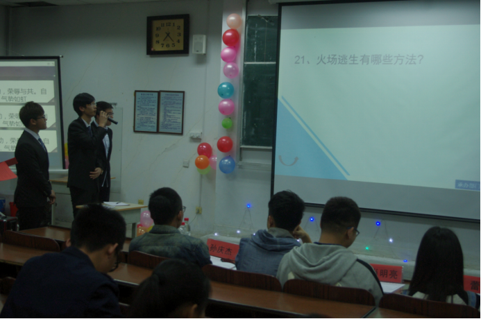 4月10日晚7点,信息与电子工程学院在2109举办安全知识竞赛,出席本次活动的嘉宾有信电学院学生会主席张炳昊,助导委主席肖明亮、吕佳颖,权益中心主席王蕾,文体中心主席孙庆杰以及学生会督导团各常委部长。