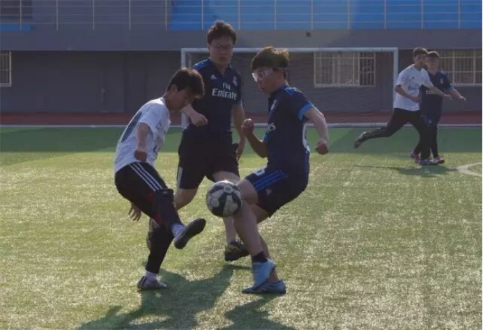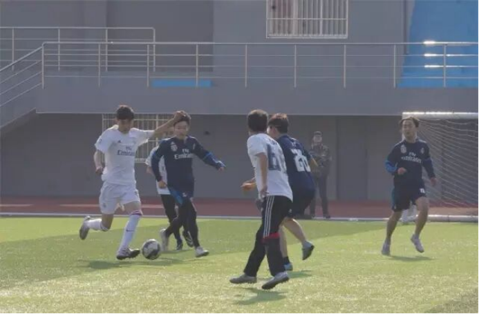 比赛开始,经过赛前的热身准备,各队员很快进入状态。大家都用尽全力,你拼我抢,双方各不相让,进攻、防守,你来我往,精彩纷呈。我院频频射门,可惜都没能进球,虽未进球,但是我院依旧激情四射,气场十足。终于65号球员临门一脚,将球踢入门。此时场外的学生们也激情澎湃,纵情地为我院队员加油、欢呼,现场气氛十分热烈。然而在进球后,由于我院防守不慎,让对方进了一个球。上半场以1:1打成平手结束;下半场,我院改变策略,加强队员之间的配合。两队的攻势有增无减,球一次次被逼近球门,却一次次被守门员拦下,紧张的气氛一直萦绕在球场上方。最终以2:1战胜中加学院。