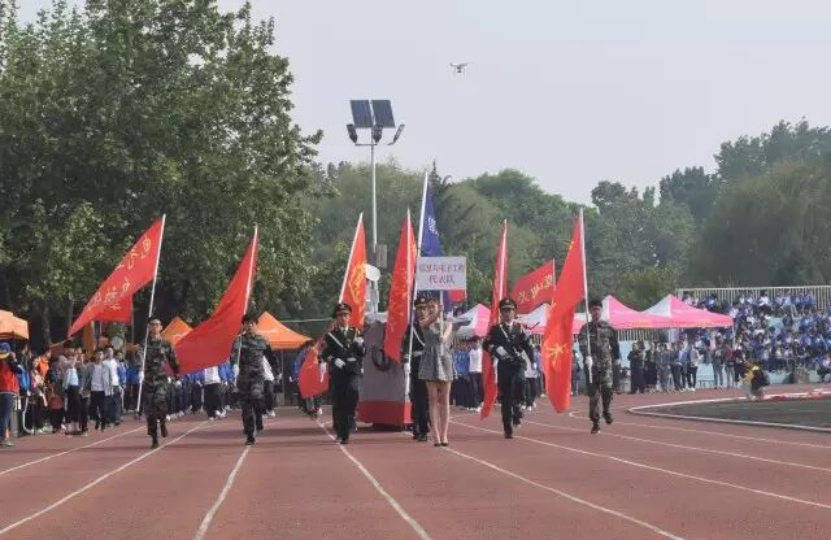开幕式的第一部分是各学院方队入场,各个方队在入场中都展现了本院的风采,而作为第一位入场的信电学院更是将独属于信电人的风采展现的淋漓尽至,步伐整齐,口号嘹亮,驾着青春的航母,充满信心,扬帆起航!
