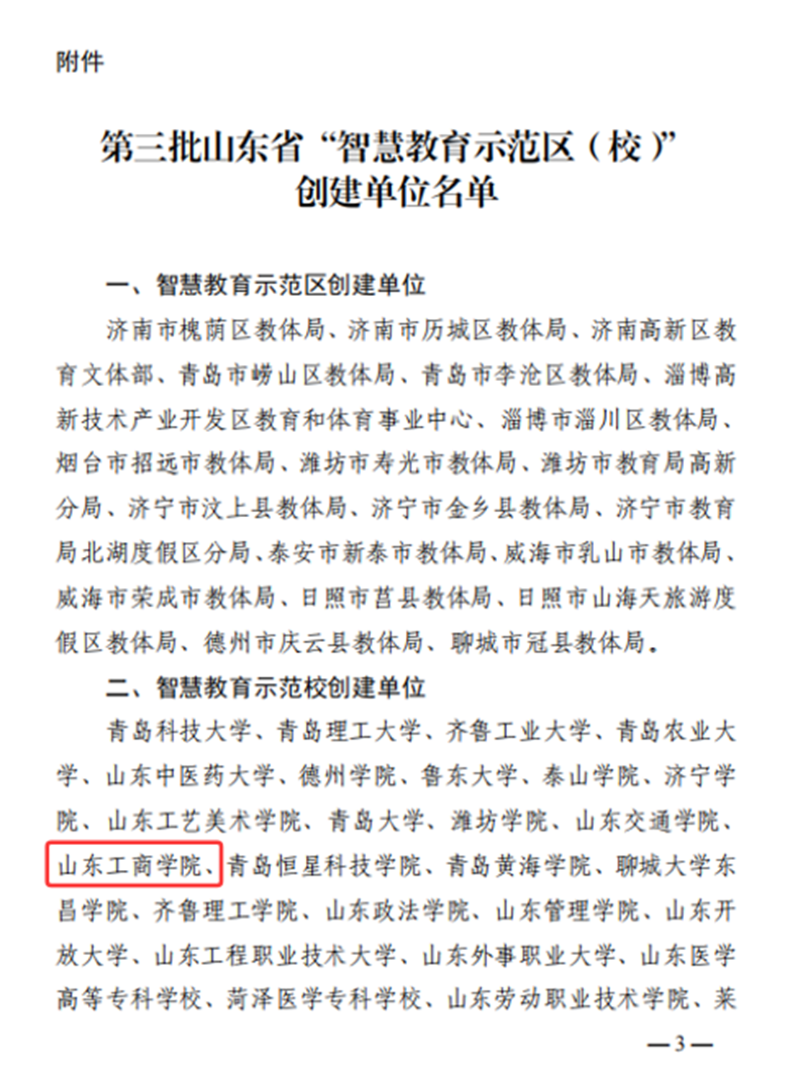 3.14 山东省“智慧教育示范区(校)”创建单位:山东工商学院