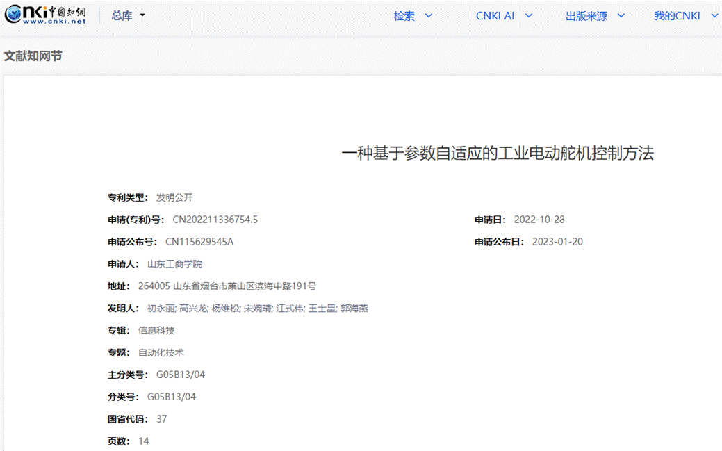 一种基于参数自适应的工业电动舵机控制方法 |
