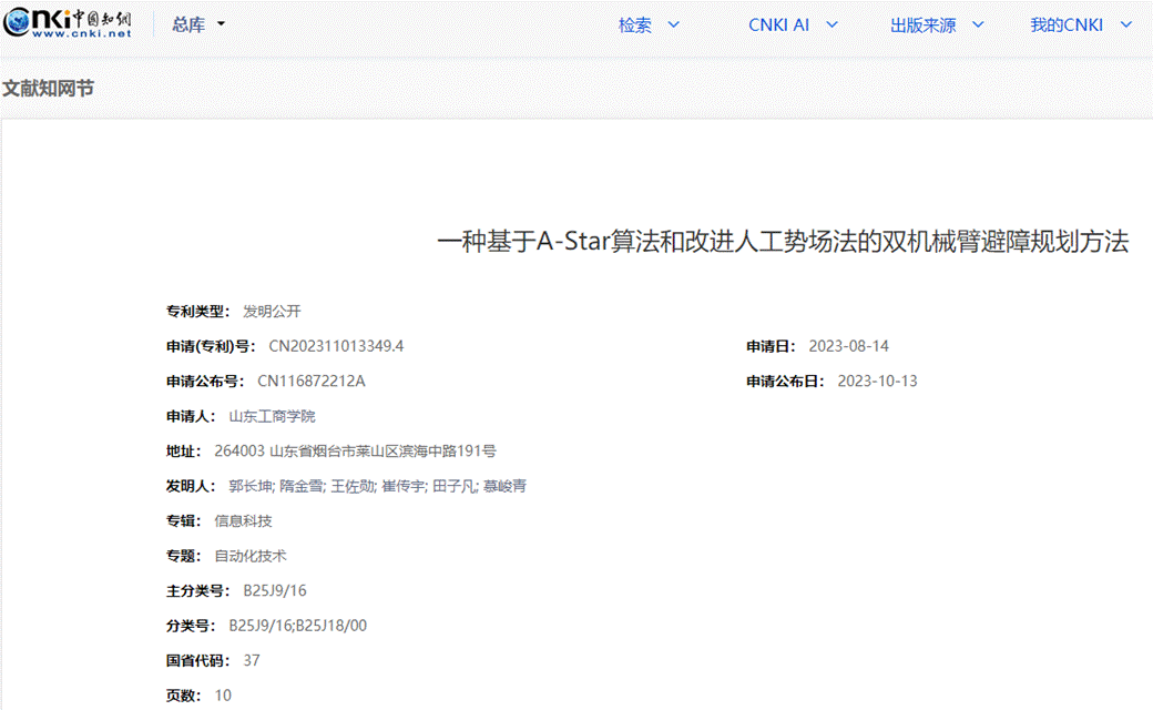 一种基于A-Star算法和改进人工势场法的双机械臂避障规划方法 |