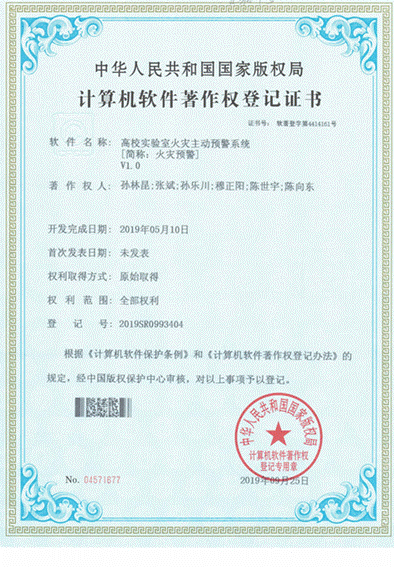 高校实验室火灾主动预警系统 [简称:火灾预警]V1.0 |