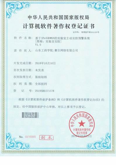 基于IPv6和WSN的实验室主动安防预警 系统[简称:实验室安防]V1.0 |
