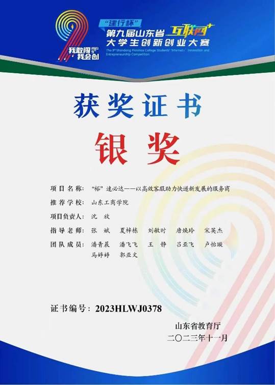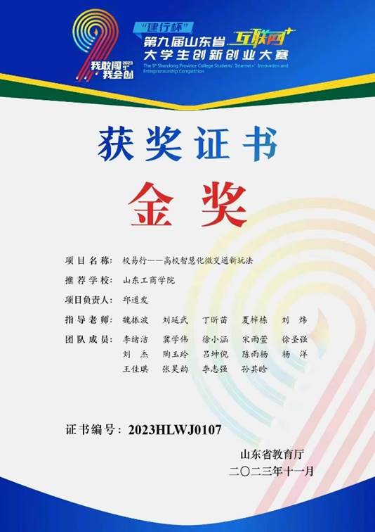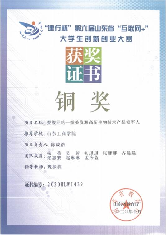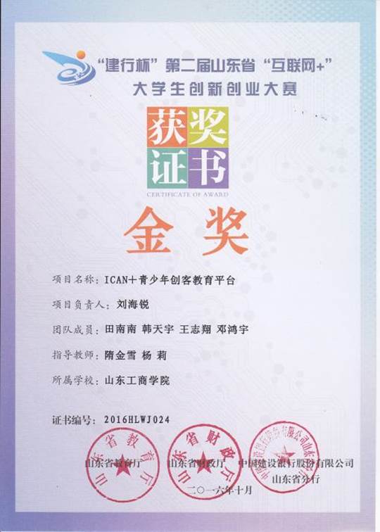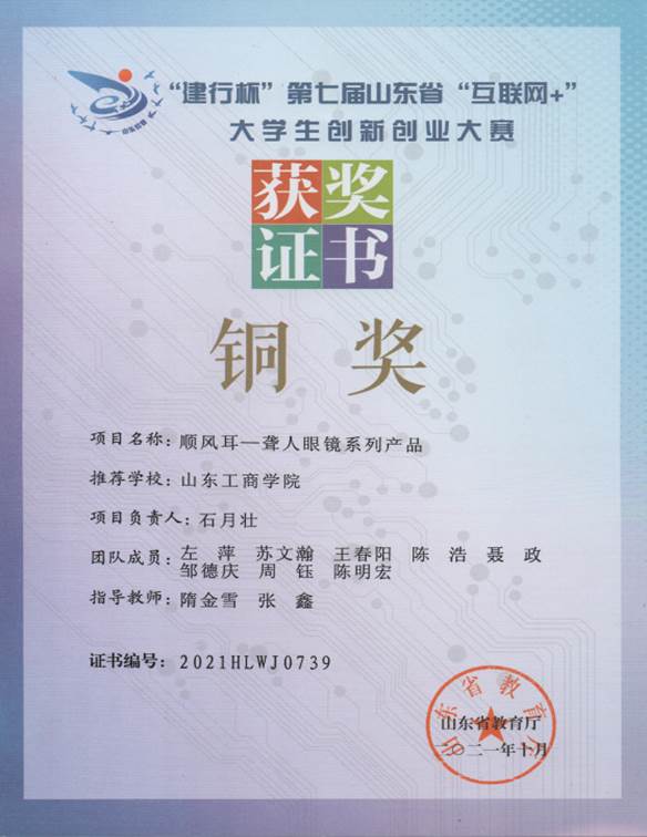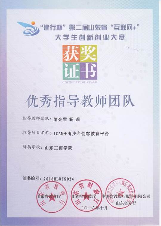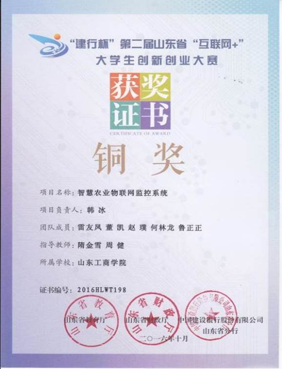 国家银奖1项,国家铜奖1项,山东省金奖2项、银奖3项、铜奖6项 |