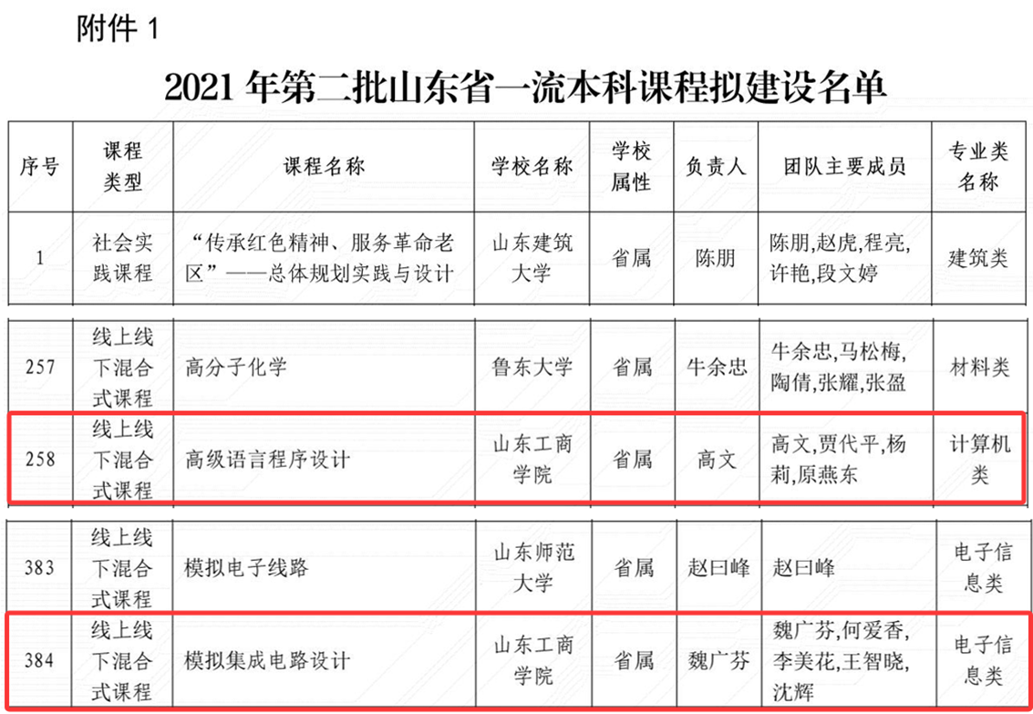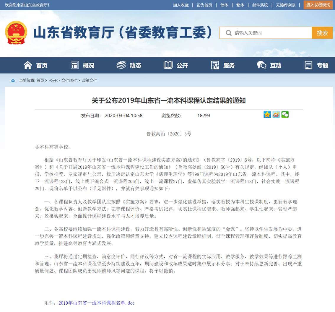 山东省一流本科课程 |